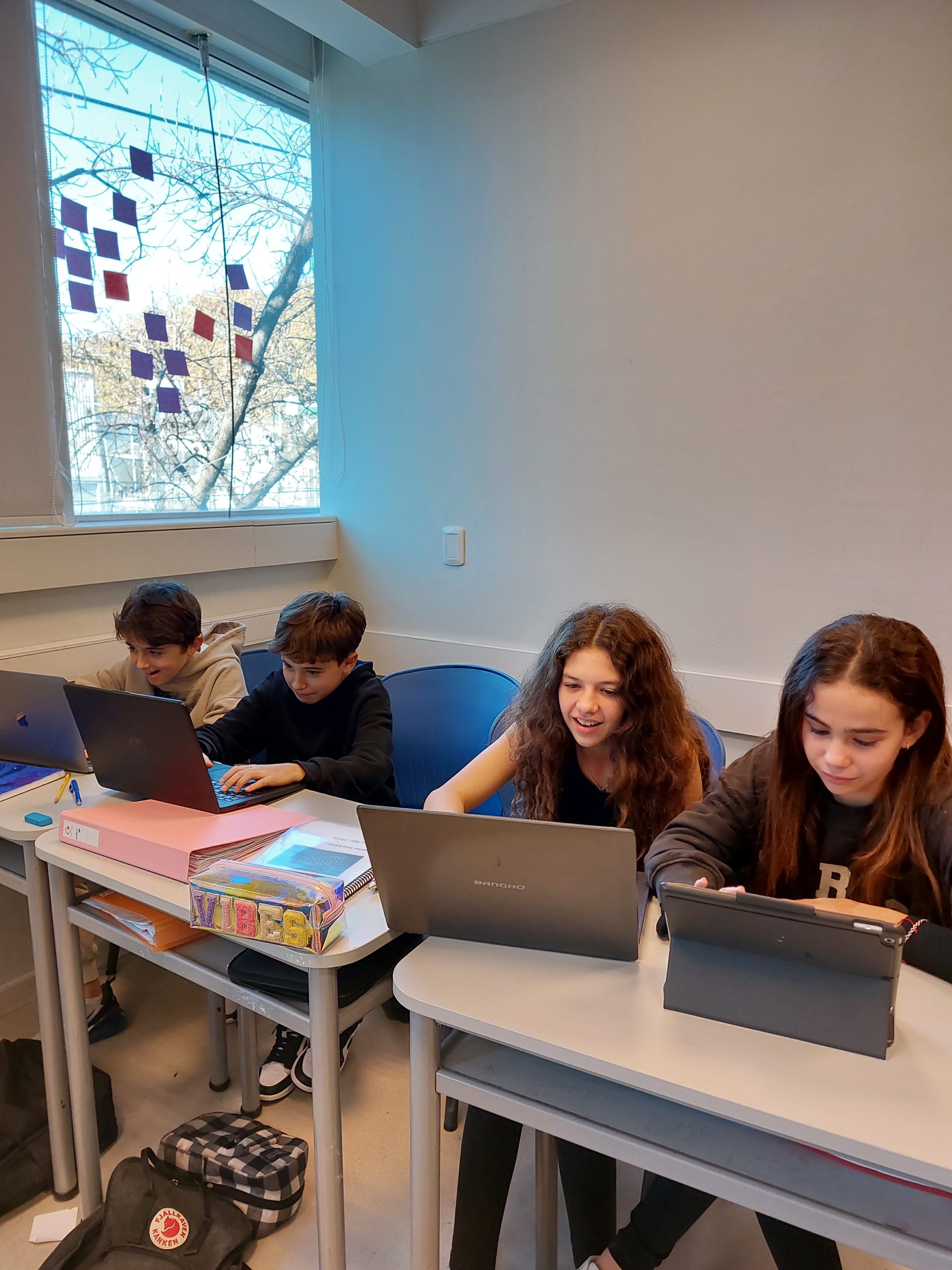 A partir de sala de 3 tienen jornadas en las cuales solamente se comunican en inglés y, a medida que van creciendo, aumenta la carga horaria de esta lengua hasta equiparar al horario en español.